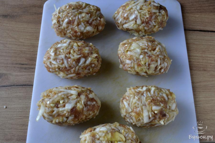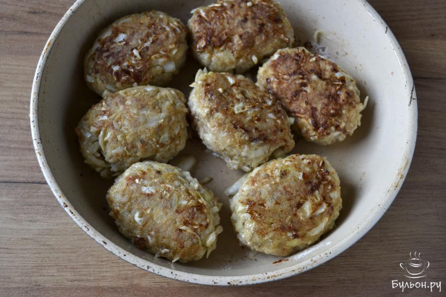 7. Каждый, ленивый голубец обкатайте в муке и обжарьте на раскаленной сковороде с растительным маслом, с обеих сторон, до румяной корочки. Обжаривайте примерно по 3-4 минуты с каждой стороны на сильном огне.