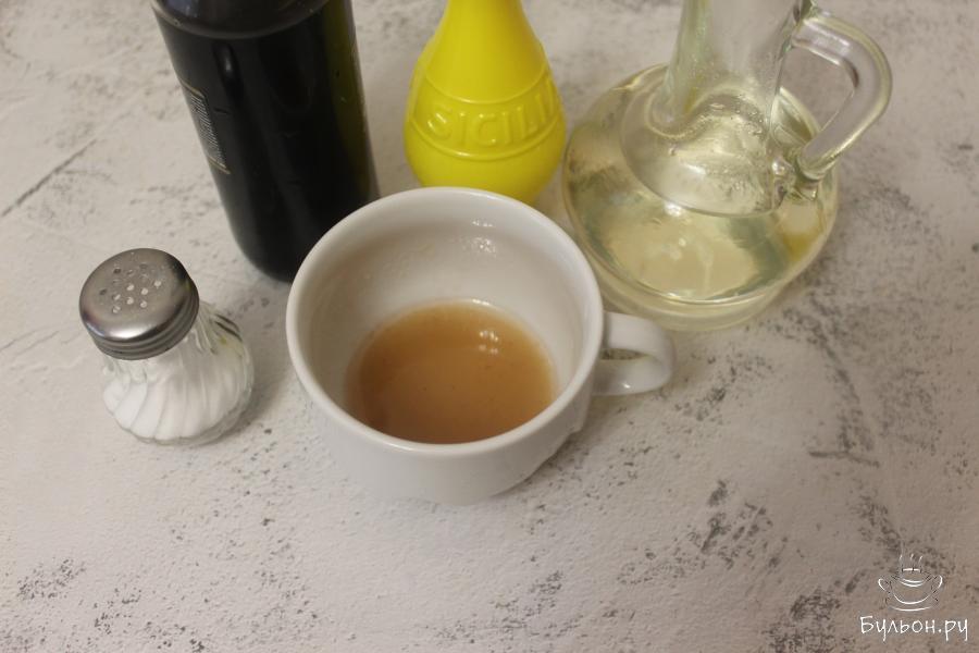 4. Приготовьте заправку. Смешайте растительное масло с лимонным соком и бальзамическим уксусом, подсолите.