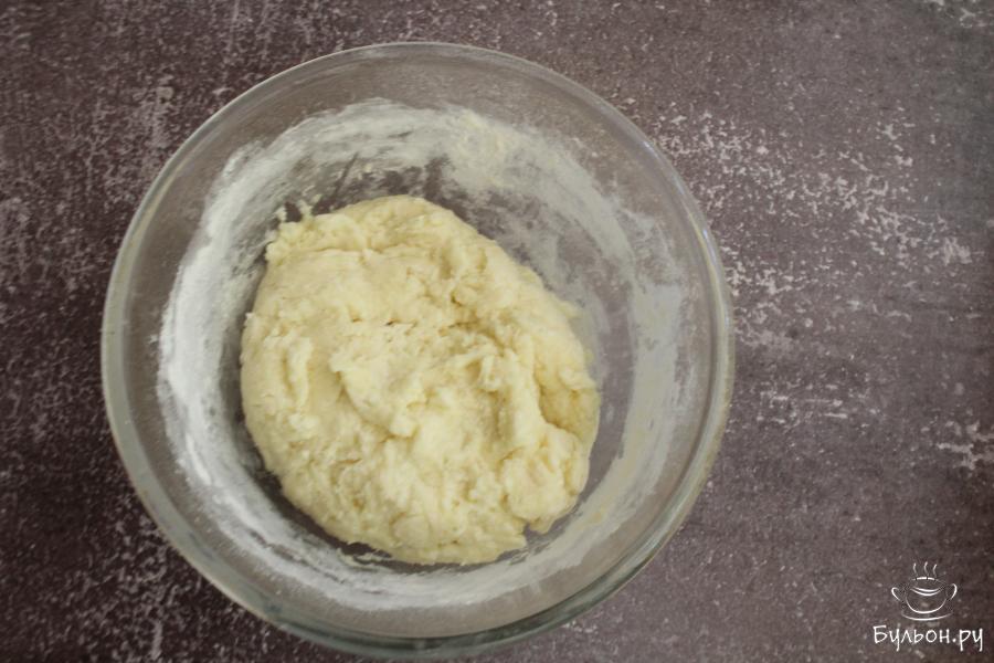 4. Добавить муку и замесить мягкое тесто. Тесто будет немного липким, не надо добавлять лишнюю муку.