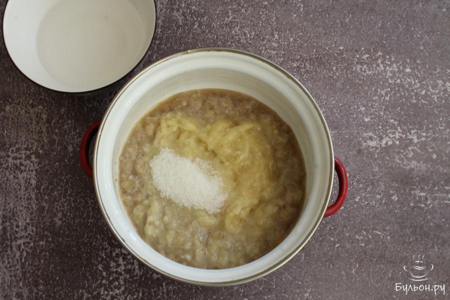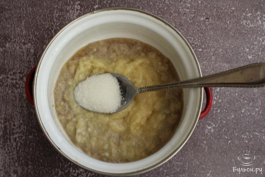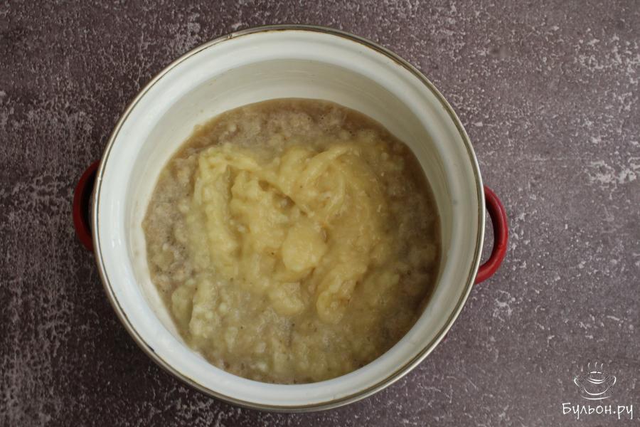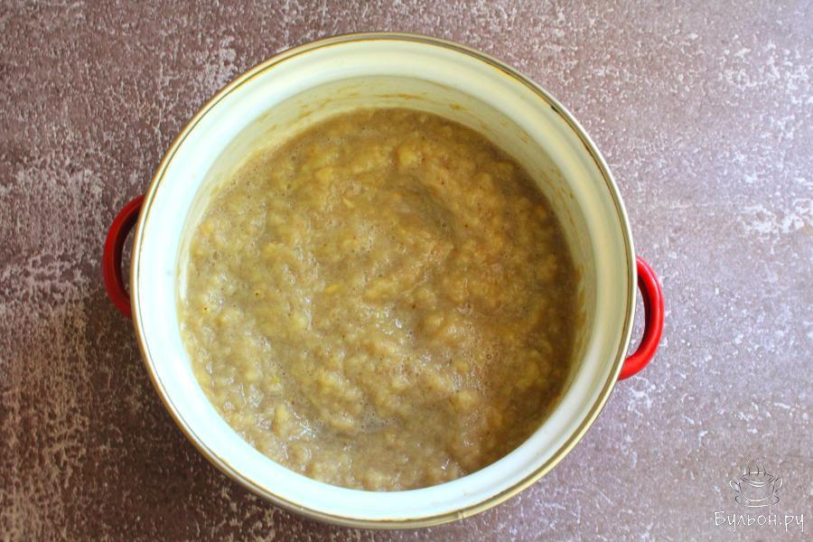Банановое пюре с яблоками через мясорубку - можно приготовить на каждый день, а можно заготовить на зиму. Пюре получается очень душистое, сладкое и вкусное. Количество сахара можно уменьшить, если бананы и яблоки очень сладкие. Добавляйте сахар частями. Если вы хотите, чтобы цвет пюре был более ярким, то вполне можно добавить сок с пары апельсинов, а количество воды уменьшить. Если добавить лимонный сок, то пюре будет светлее. Если вы заготавливаете пюре на зиму, то разложите кипящее пюре по баночкам и закройте закручивающимися крышками.
