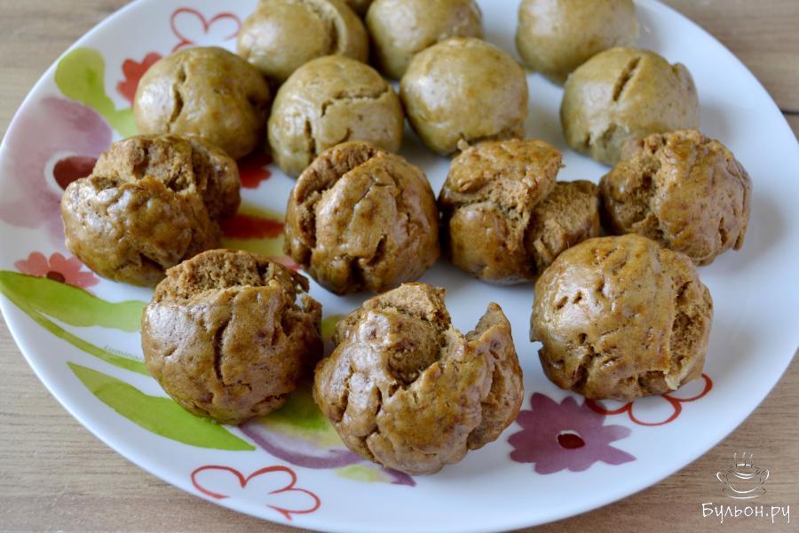 11. Положите вторую порцию заготовок в поддон и приготовьте таким же способом. А так как вода в мультиварке была кипящая - пряники во время приготовления получились в трещинками.