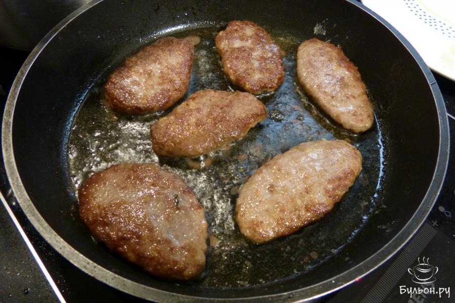 7. Взять глубокую сковороду, поставить на огонь, налить растительное масло, разогреть ее и положить сформованные котлеты.