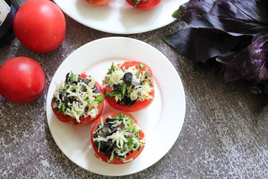 Фаршированные помидоры с сыром, оливками и базиликом понравятся всем любителям закусок из помидоров. Готовится такое блюдо за считанные минуты. Закуску можно сразу подать к столу, в жаркое время ее можно недолго охладить перед подачей. Помидоры получаются очень ароматные, легкие, вкусные и насыщенные. Сыр для приготовления берите любой твердый, который вы любите. Для остроты в начинку можно добавить, продавленный через пресс, зубчик чеснока.