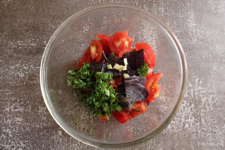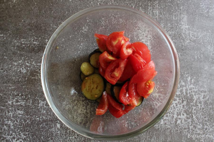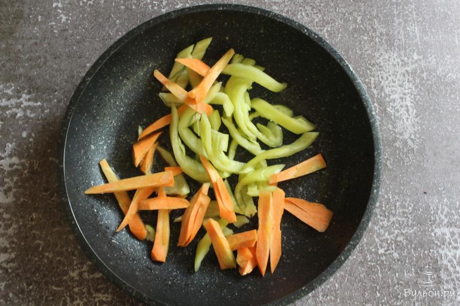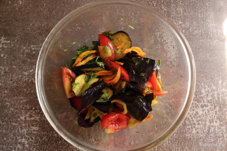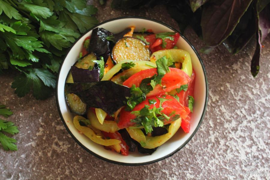 Салат с жареными баклажанами, перцами, морковью и помидорами