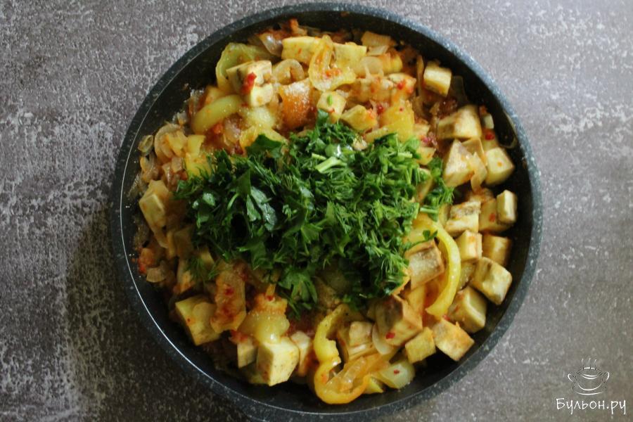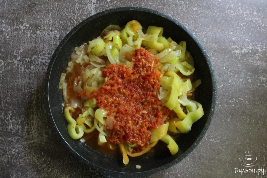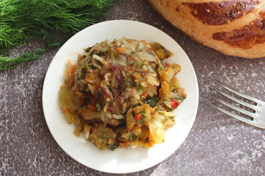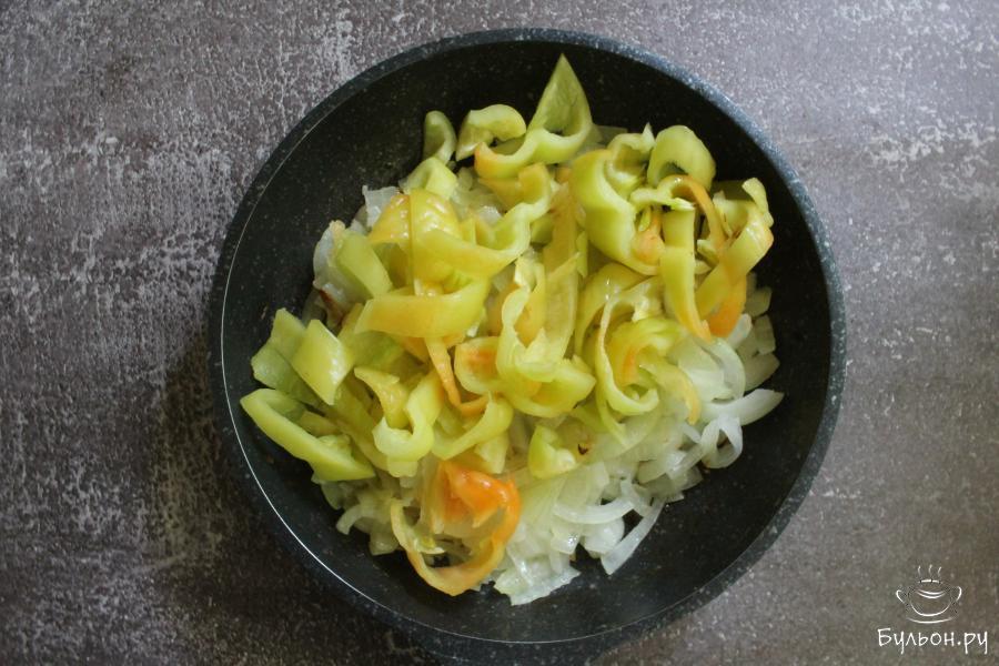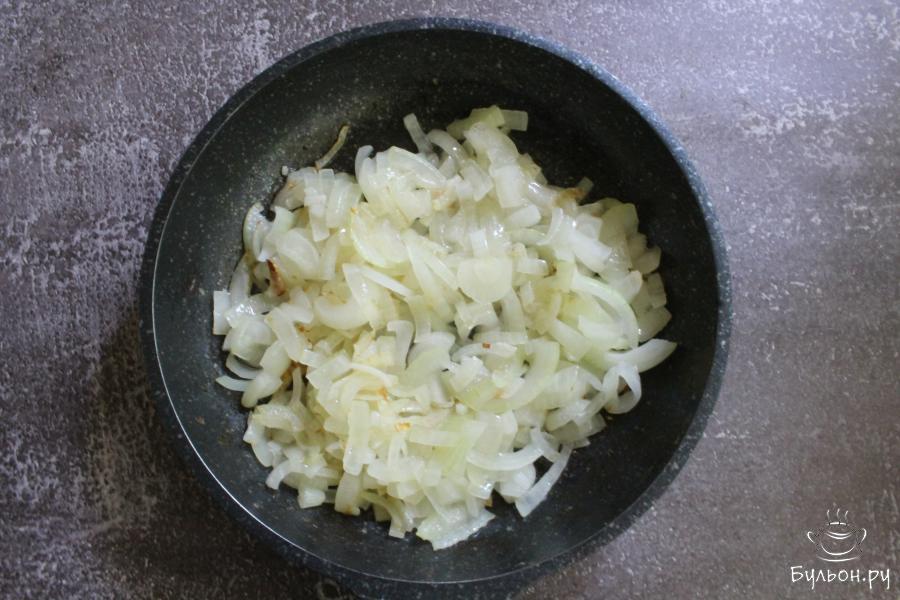5. Оставшийся лук нарезать не очень крупно и обжарить, до полумягкости, на сковороде с разогретым маслом.