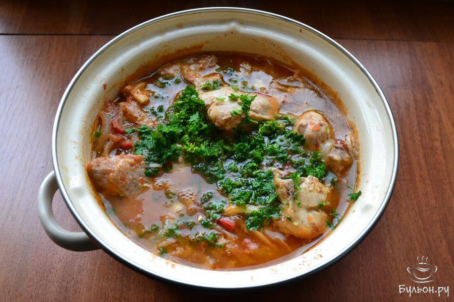 13. Добавить измельченную петрушку, прогреть блюдо еще минуты 3-4 и убрать с огня. Вместо петрушки можно добавить свежую кинзу, кто любит.