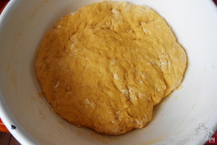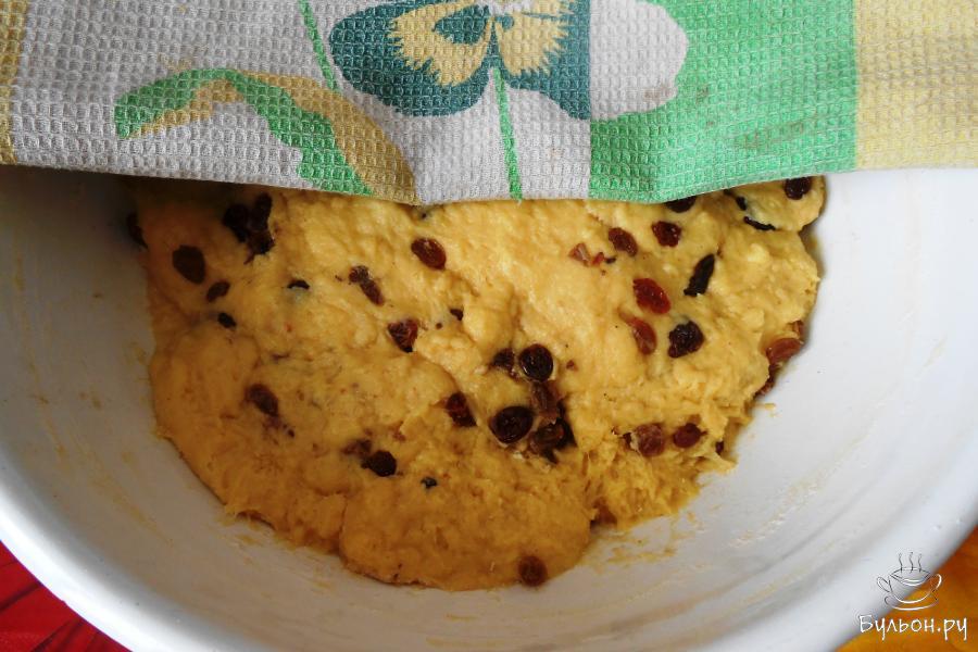 13. Тесто сложить в миску, прикрыть полотенечком и ставим в теплую духовку (температура 50 градусов) на 1 час 15 минут.