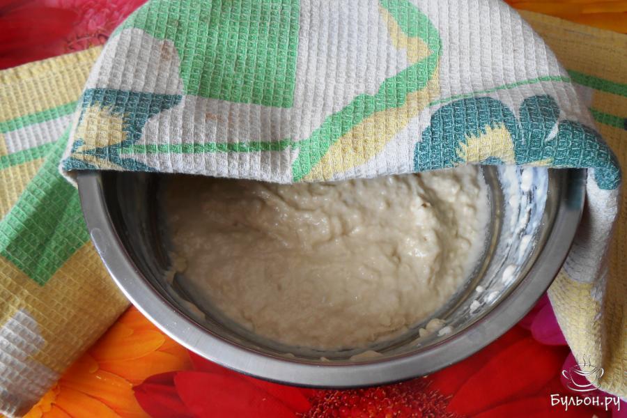 3. Накрыть нашу опару в миске полотенечком и ставим в духовку (температура 50 градусов) на 25 минут.