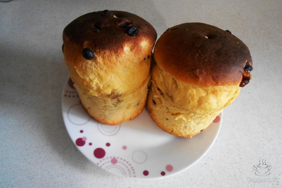 Пасхальную выпечку на дрожжевом тесте с изюмом готовлю на молоке и домашних яйцах. Куличи получаются в меру сладкими, сытными и не крошатся. Чтобы пасхальные куличи получились вкусными, я вымешиваю тесто руками в течение 10 минут. Для пышности в тесто добавляется маргарин. Для выпечки кулича я использую емкости от консерв разных форм. Из данного количества ингредиентов получается 11 штук разных размеров.