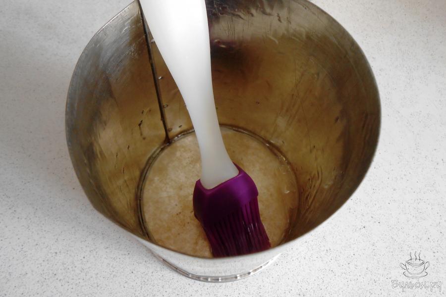 14. Формочки смазываем растительным маслом с помощью силиконовой кисточки, донышко выложить пергаментом.