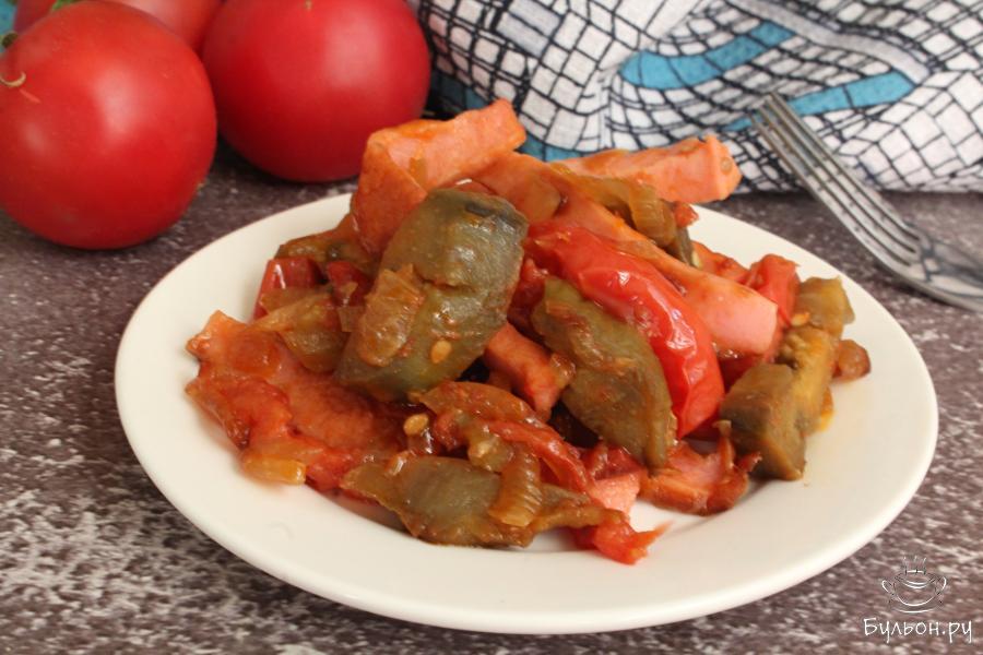 Если вам нужно приготовить что-то быстрое на завтрак, полдник или просто перекусить в течение дня, то обратите внимание на этот рецепт. Буквально за полчаса у вас будет готово вкусно блюдо. Тушеные овощи с вареной колбасой на сковороде получаются сочные, легкие, яркие и ароматные. В такое блюдо всегда можно добавить и другие любимые овощи, измельченную зелень, душистые пряности. Если помидоры толстокорые, то перед приготовлением лучше снять с них шкурку.