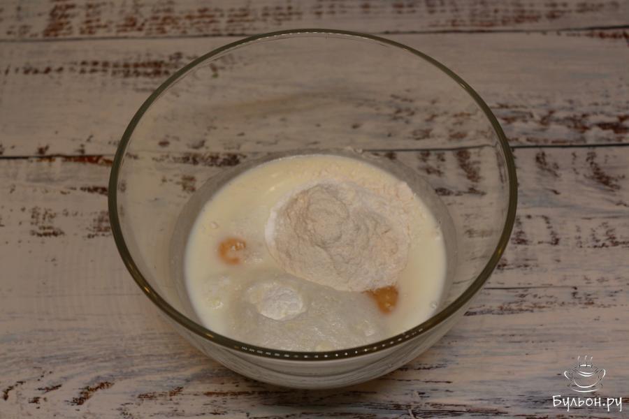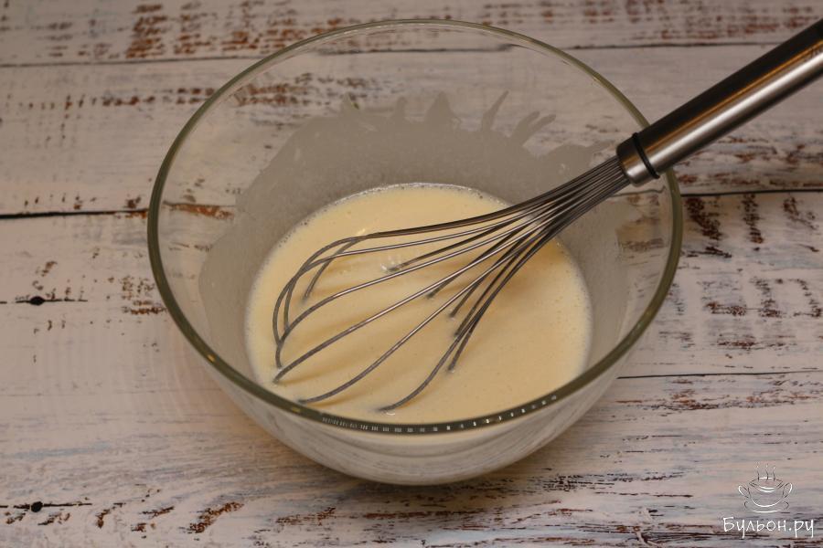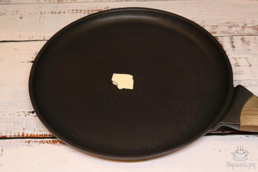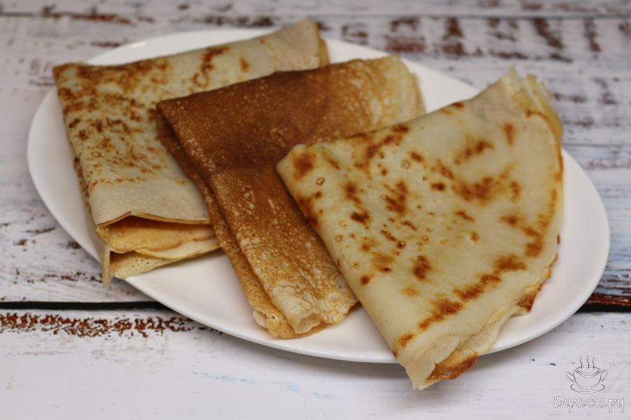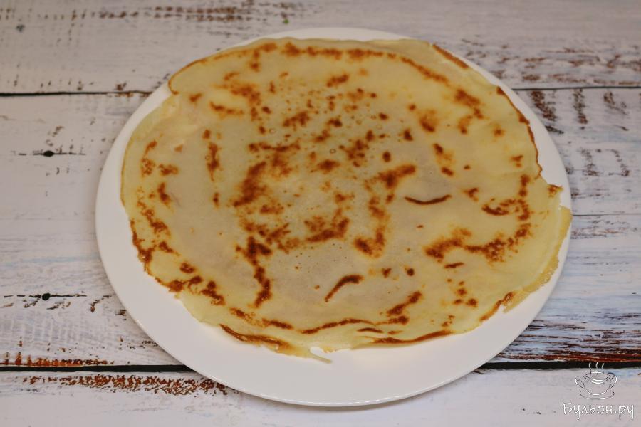 5. Влейте тесто, как при приготовлении обычных блинов, распределив тесто по дну сковороды. Обжарьте блин с двух сторон до золотистого цвета.