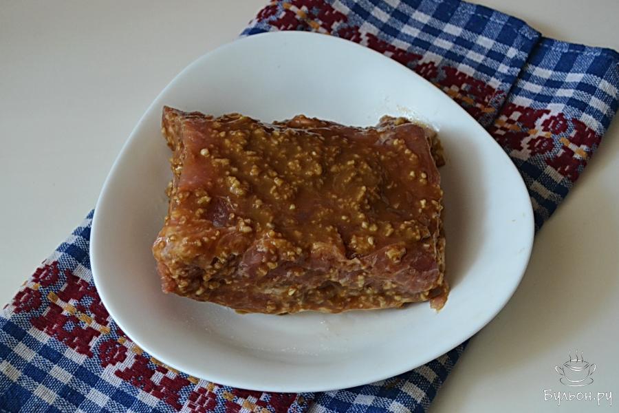3. Обильно смазать корейку маринадом и оставить на сутки или часов на 12. Поместить в холодное место, но не в морозилку.