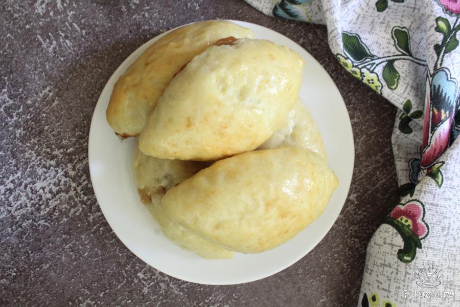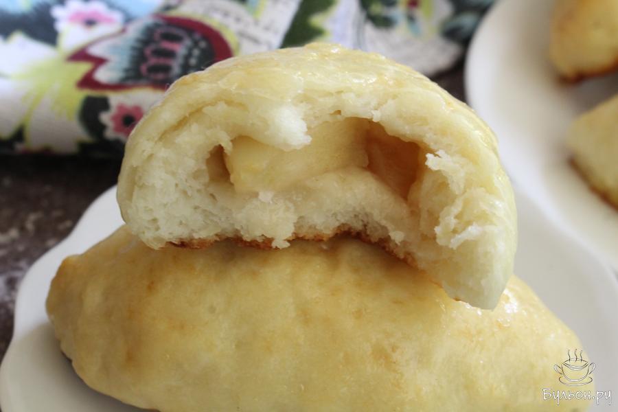 Пирожки на кефире с яблоками в духовке - готовятся без яиц и если вы придерживаетесь вегетарианского питания, то смазывать пирожки перед выпечкой можно молоком или маслом. Пирожки по этому рецепту получаются воздушные, легкие, мягкие - с сочной, душистой и сладкой начинкой. Готовятся пирожки достаточно быстро, тесто не нужно держать долго в тепле. Уже через полчаса тесто готово к приготовлению пирожков. Выпекаются такие пирожки тоже очень быстро. Количество муки у всех уйдет разное - это зависит от самой муки и густоты кефира. Бывает, что кефир очень густой и муки бывает достаточно 2 стакана, если же кефир жидкий, то может уйти почти три стакана муки.