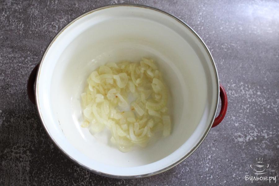 1. Лук почистить, промыть, мелко нарезать. В кастрюле или в казане разогреть масло и обжарить лук до мягкости.