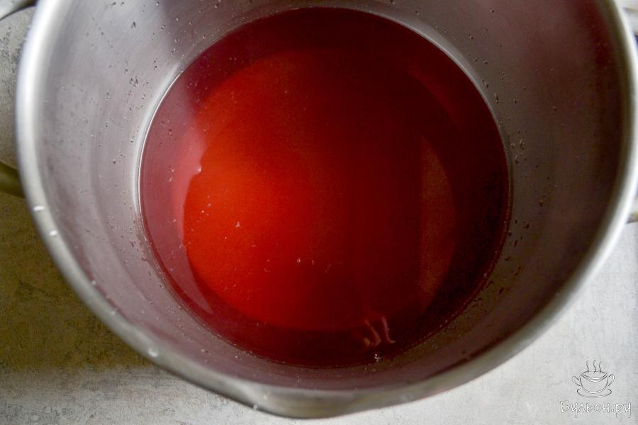 5. Через полчаса воду из банки слейте в кастрюлю с сахаром, поставьте на огонь. Доведите до кипения, проварите несколько минут, чтобы сахар полностью растворился.