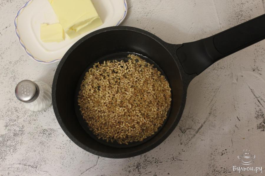 1. Залейте полбу водой и поставьте на огонь, варите на медленном огне под крышкой 20-25 минут. Затем добавьте сливочное масло, посолите и перемешайте, дайте настояться каше еще примерно 20 минут.