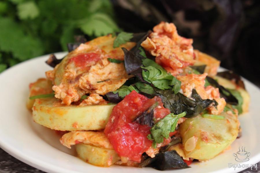 Яичница с кабачками и помидорами - готовится очень быстро и из доступных продуктов. Такая яичница разнообразит ваши привычные завтраки из яиц. Кабачок для приготовления выбирайте молодой. Если кабачок переспелый - то его, перед приготовлением, лучше почистить. Помидор выбирайте сладкий. Такая яичница получается очень сочная, легкая, вкусная, яркая, а благодаря зелени, еще и очень ароматная. Яичница вкусная как горячая, так и холодная.