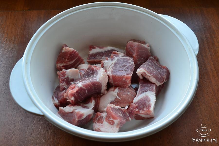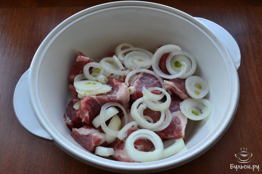 5. Мясо тщательно перемешать с луком и маринадом, накрыть и оставить в прохладном месте часов на 6 - за это время мясо отлично промаринуется. Затем мясо посолить по вкусу и оставить еще на 10 минут.