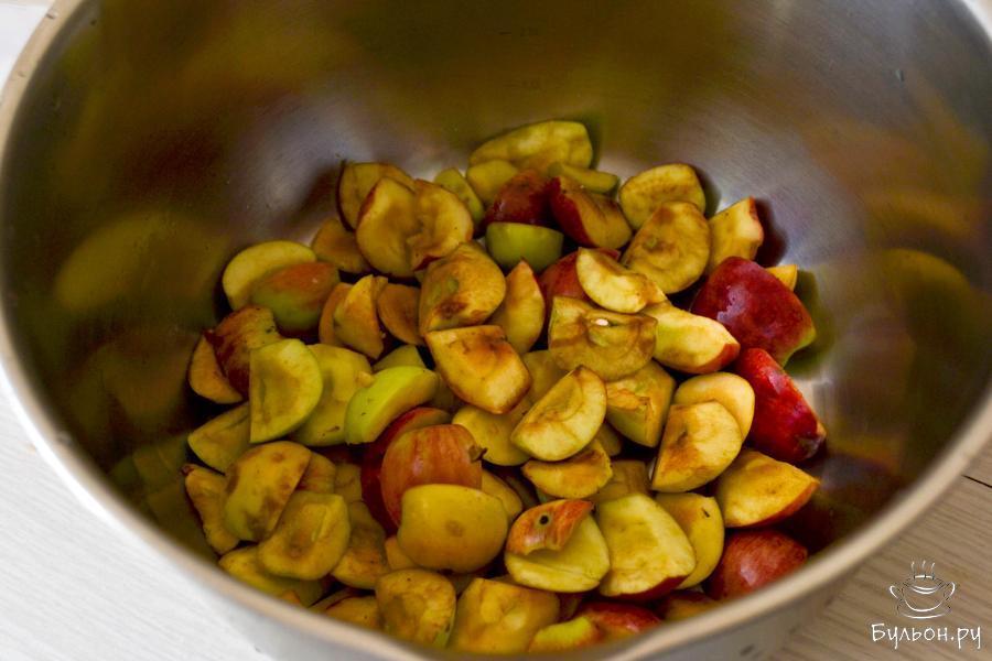 1. Яблоки вымойте, разрежьте на дольки, удалите семенную камеру. Положите нарезанные яблоки в кастрюлю.