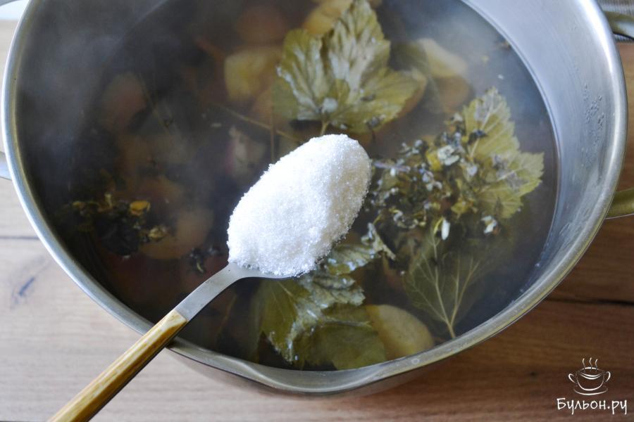 4. Всыпьте сахар по вкусу, закройте кастрюлю крышкой и оставьте на столе для настаивания и охлаждения.