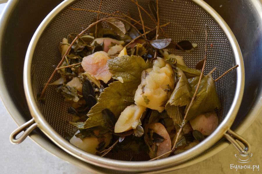 Очень вкусный, ароматный и полезный напиток можно приготовить для жарких дней. Для этого нужно сварить яблочный компот, в который можно добавить по вкусу самые разные ароматные травы и листья. Я использую листья черной смородины и веточки брусники, а также зеленый чай. По желанию можно взять черный листовой чай. Сахар в напиток кладите, исходя из собственного вкуса. Такой напиток лучше подавать хорошо охлажденным. Яблочный чай просто идеален для жары. В нем не только вкус, но и польза.