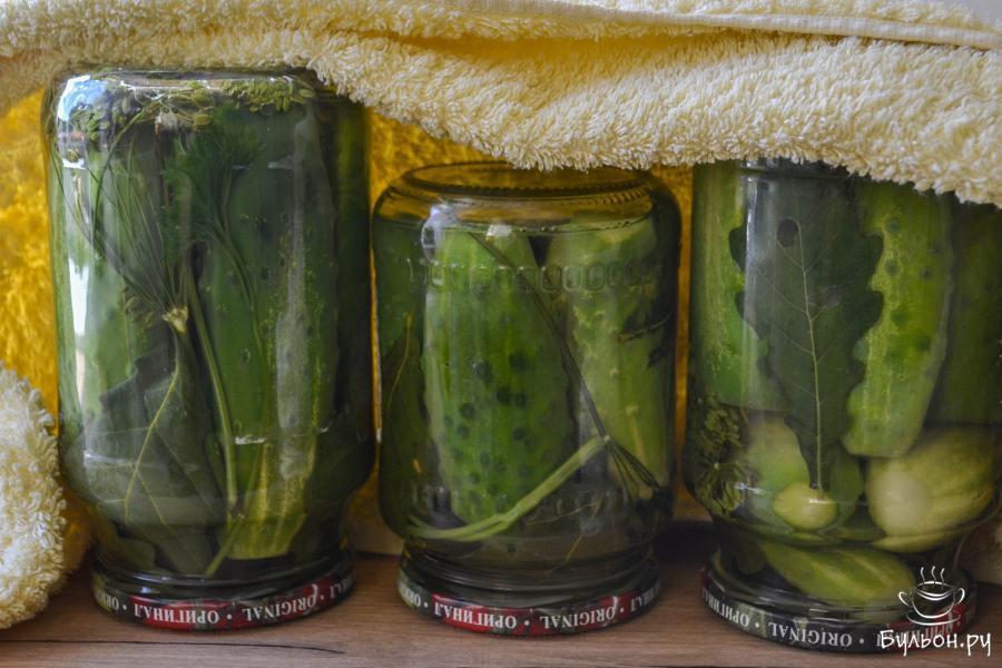 7. Залейте маринад в банки до самого верха. Герметично закройте банки крышками и переверните их вверх дном. Укутайте под одеяло на сутки.