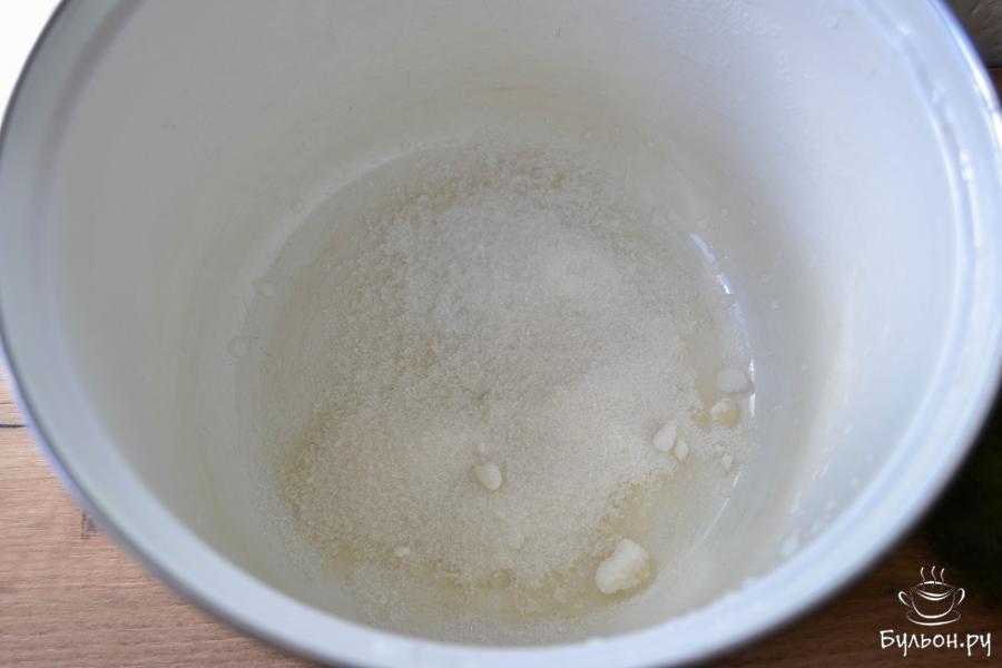 6. Слейте воду из банок в кастрюлю и поставьте ее на огонь. Доведите до кипения и проварите несколько минут, чтобы сахар и соль полностью растворились. Снимите кастрюлю с огня и влейте уксус (70%)
