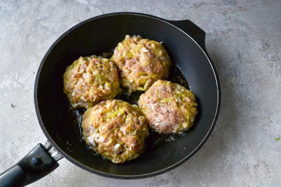 6. Сформуйте из фарша котлеты. Хорошо разогрейте сковороду с растительным маслом и положите на нее заготовки.
