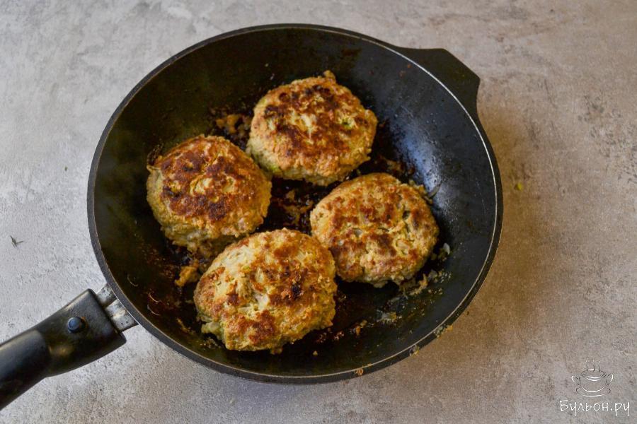 7. Обжарьте котлеты, поочередно, с обеих сторон до румяной корочки на среднем огне. Во время обжаривания можете перевернуть котлеты пару раз с одной стороны на вторую, чтобы равномерно и быстрее прожарились.