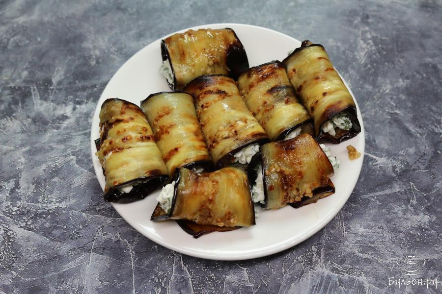 Рулетики из баклажанов часто подают на праздничные столы, или на обычный прием пищи, например, ужин, в качестве закуски к основному блюду. Такие рулетики пользуются популярностью в грузинских ресторанах и кафе. И не зря. Ведь они очень вкусные. В ломтики жаренных баклажанов добавляются различные начинки, в основе которых могут быть майонез, творог, сливочный сыр, сметана. Также добавляется чеснок, зелень, орехи, гранат, сыр и другие ингредиенты. Я же вам предлагаю следующий рецепт из баклажанов - это будут рулетики из баклажанов с начинкой из сливочного сыра.