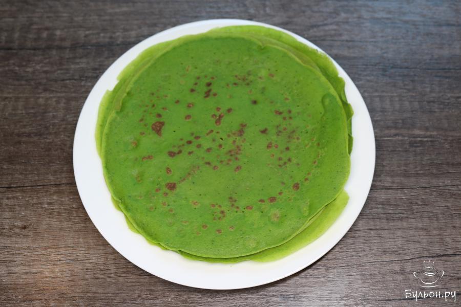 Предлагаю вашему внимаю рецепт полезных низкокаллорийных блинчиков, а именно: шпинатных блинов. Они имеют красивый, зеленый оттенок, который вызовет у вас аппетит. Вкус у них нейтральный, овощной, сами блинчики тонкие. Они готовятся в считанные минуты, ничего сложного: надо просто пробить блендером все ингредиенты и обжарить блинчики. Их можно употреблять со сметаной, а можно добавить в них начинки и завернуть их любым, удобным вам способом.
