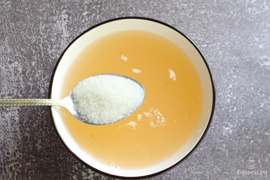 4. Влить рассол в чашку с капустой. Яблоки почистить от сердцевинок и нарезать дольками, выложить в чашку и перемешать. Оставить чашку с капустой на двое суток при комнатной температуре.