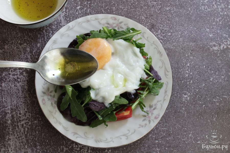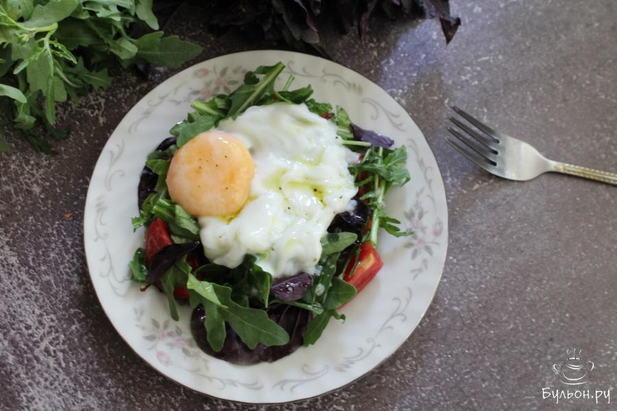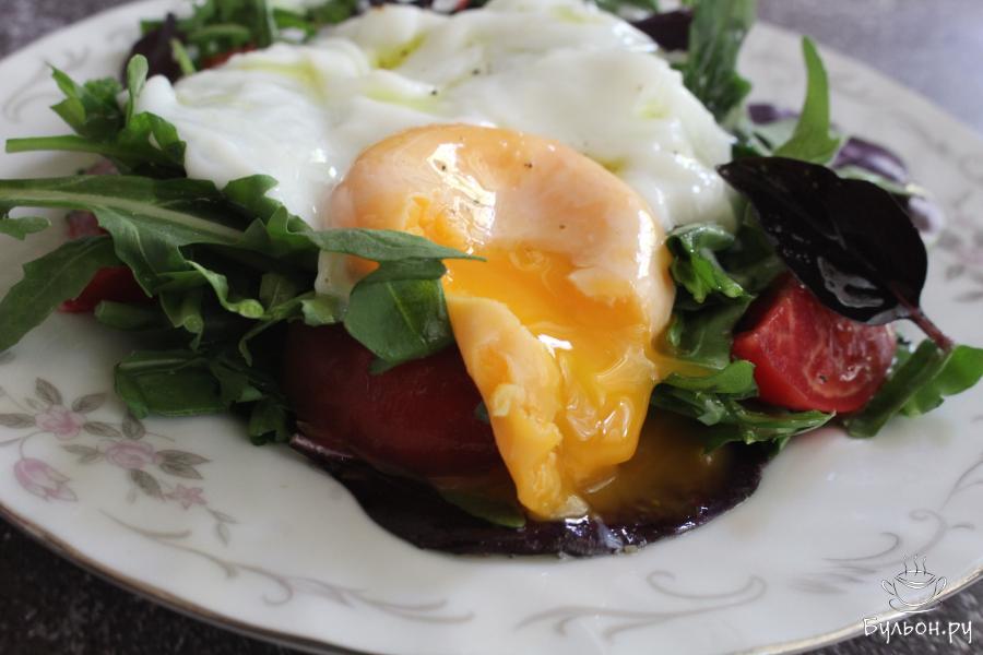 Хоть это блюдо называется "Салат из рукколы и помидоров с яйцом пашот", но это не совсем салат, а скорее блюдо на завтрак, перекус или полдник. Блюдо получается очень вкусное, легкое, но насыщенное, душистое, полезное и необычное. Блюдо хоть и простое, но сочетания вкусов настолько яркое, что вы захотите приготовить его еще не раз. Зелень выбирайте по вкусу, вполне можно добавить микс салатных листьев, кинзу. Помидоры желательно найти сладкие, плотные и не сильно водянистые.