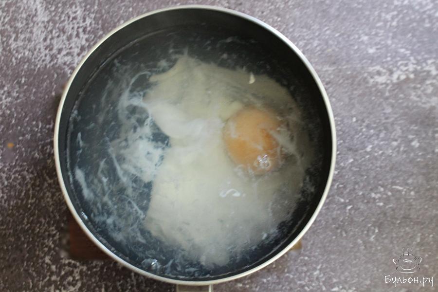 7. В сотейнике довести воду до кипения и аккуратно вылить в воду яйцо. Готовить яйцо пашот пару минут.