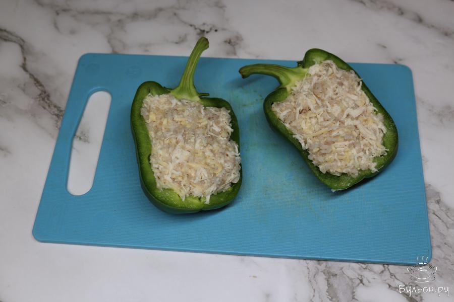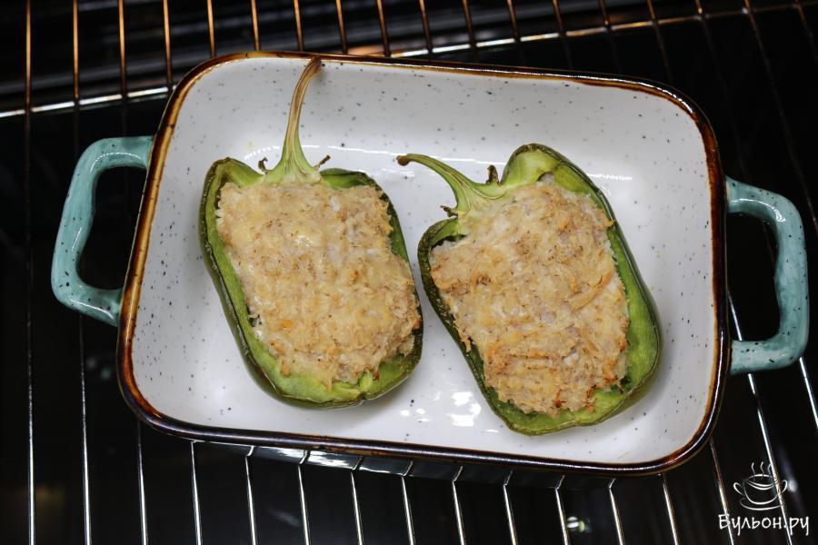 6. Выложите перцы в форму для запекания. Поскольку я использовала маленькие формы, то у меня их вышло две. Выпекайте перцы с начинкой 25 минут, при температуре 180 градусов.