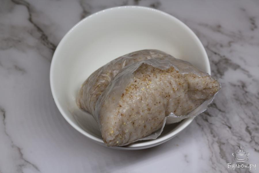 2. Пока варится куриное филе, сварите ячневую кашу согласно инструкции, указанной на упаковке. Я варю в пакетиках, в подсоленой воде, в течение 30 минут.