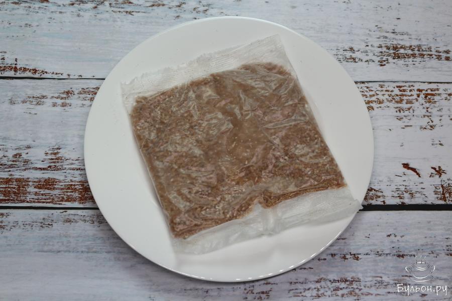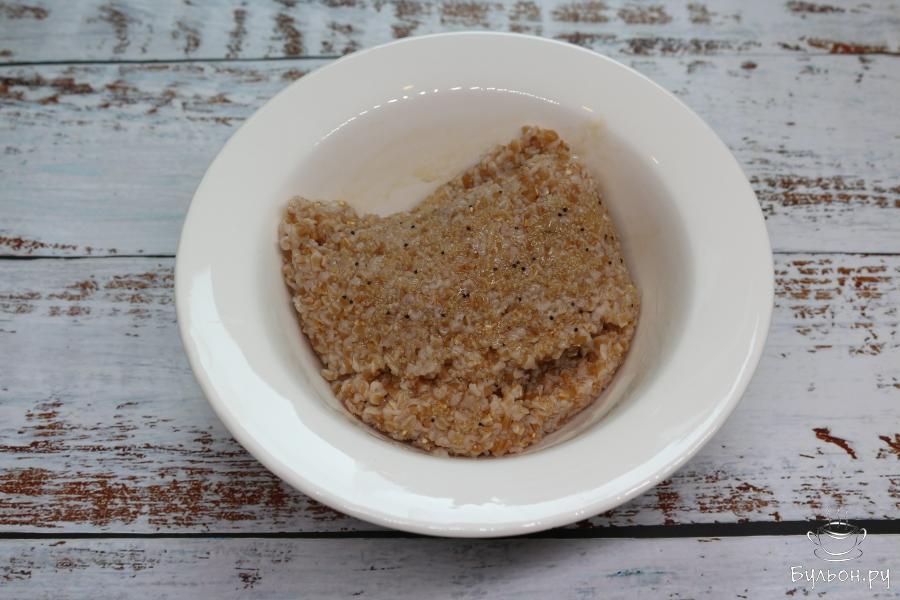 1. Промойте пакет с крупой под струей воды. Затем выложите его в кипящую подсоленную воду. Варите 25 минут на умеренном огне. Далее, достаньте пакет из воды, немного остудите.