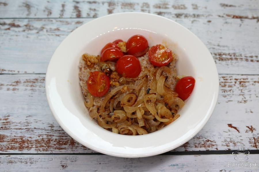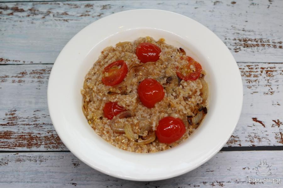 Смесь полбы и амаранта благотворно сказывается на самочувствии, защищает от болезней и повышает иммунитет. Состав смеси насыщен питательными веществами и незаменимыми аминокислотами. Такая смесь обладает оригинальным вкусом, с легким ореховым ароматом. Сильный иммунитет - это гарантия здоровья и отличного настроения, поэтому варим кашку и едим. А чтобы она была еще вкуснее, приготовим ее с овощами. За счет добавления помидорок черри, репчатого лука и чеснока каша станет ароматной, сочной и яркой на вкус. Сливочности каше добавит сливочное масло.
