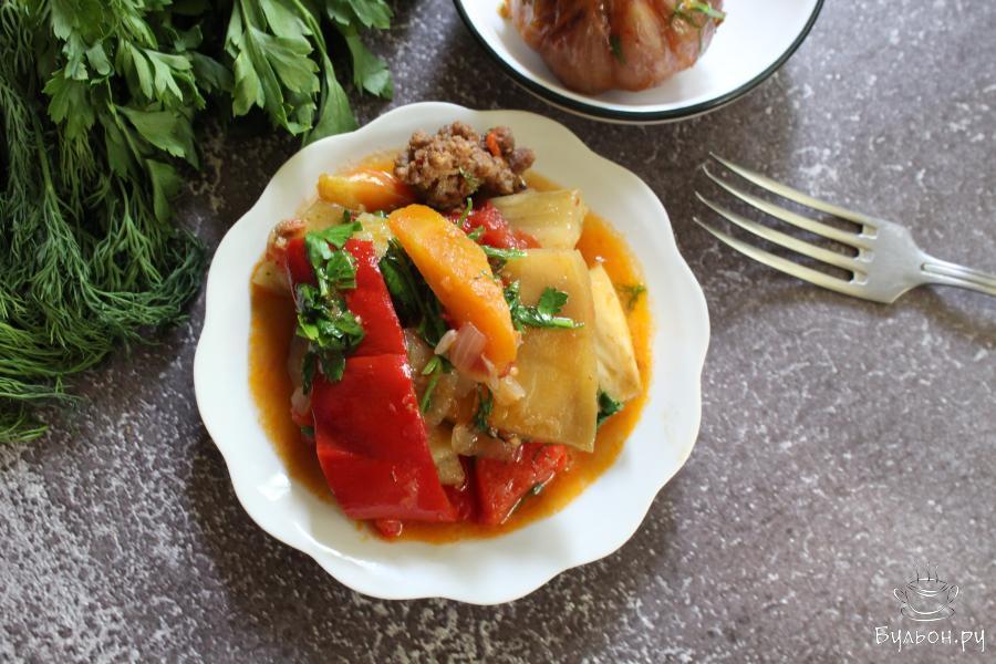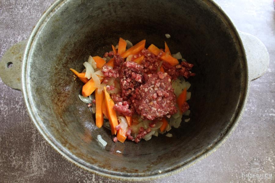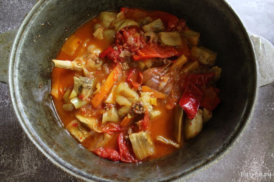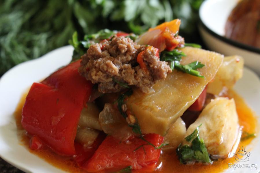 Тушеные овощи с мясным фаршем в казане - это замечательное блюдо, которое можно подать к обеду или ужину. Блюдо яркое, насыщенное, сочное и ароматное. Готовится блюдо просто и достаточно быстро. Все овощи можно готовить до той степени мягкости, которая нравится именно вам. Воды можно добавить меньше или больше. Зелень и пряности добавляйте те, которые вы любите. Если вы любите блюда с картофелем, то и его можно добавить в это блюдо.