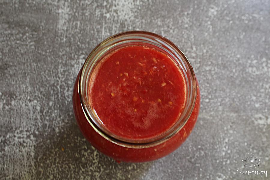 5. Добавить соль и сахар. перемешать. Попробовать соус и если не хватает остроты, то перекрутить через мясорубку перцы чили.