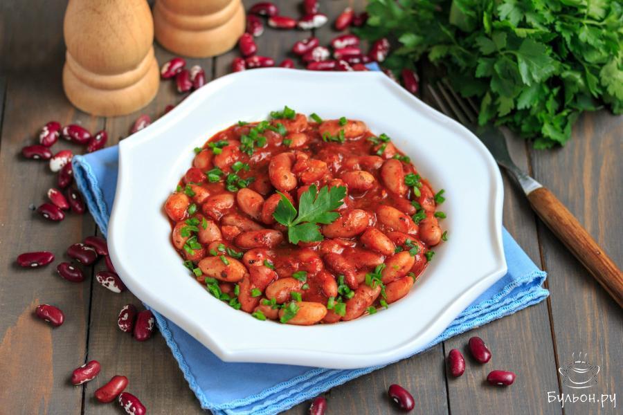 Фасоль в томатном соусе - простое, полезное и вкусное блюдо, с приготовлением которого справится даже начинающий кулинар. Вполне самостоятельное, сытное блюдо уже само по себе. Фасоль в томатном соусе способна стать прекрасным дополнением к мясу и гарнирам из круп, основой для рагу или супов, а в сочетании с лепешками или кукурузными чипсами - сытной закуской, которая придется по вкусу всем без исключения.