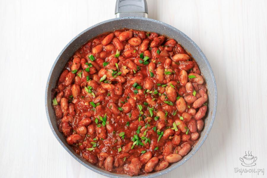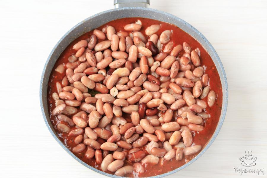 12. Процедите и добавьте в соус фасоль. Снова доведите смесь до кипения и потомите блюдо на небольшом огне еще 5-10 минут, пока соус не загустеет.
