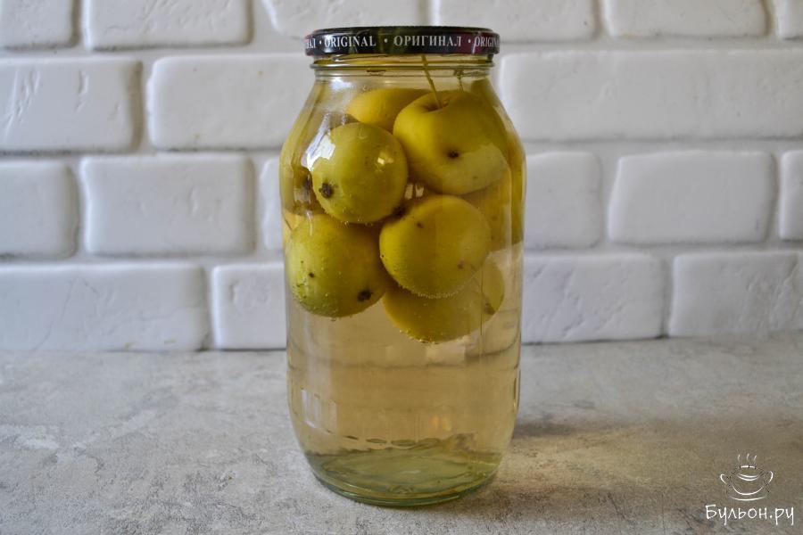 2. Залейте в банку кипящую воду. Прикройте банку крышкой и оставьте на кухонном столе на полчаса, чтобы яблоки как следует прогрелись.