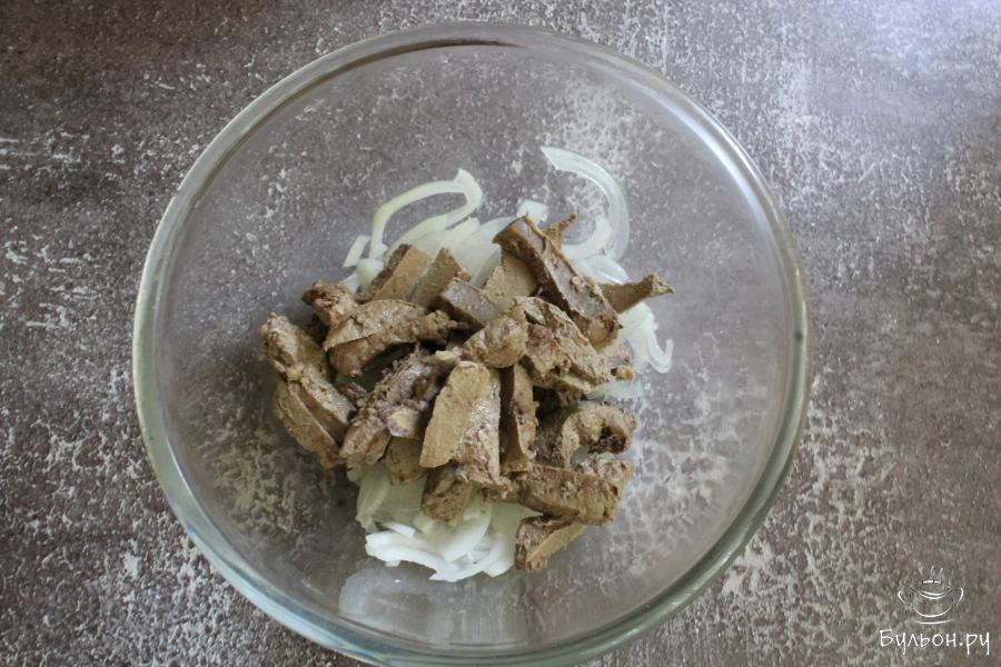 3. Печень промыть, почистить от пленок и нарезать не очень тонкими полосками. Варить печень после закипания 15 минут. Воду слить.