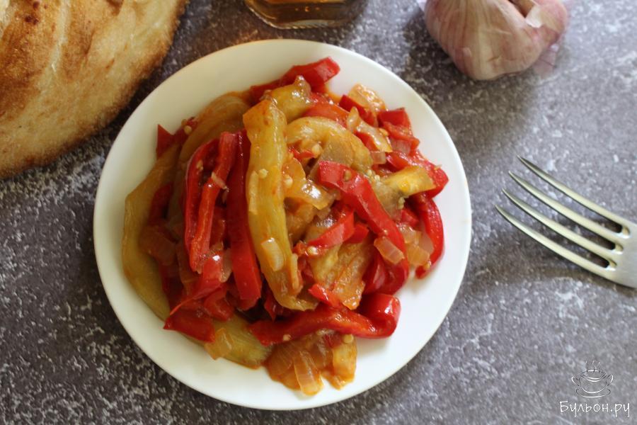Теплая закуска из баклажанов с красными перцами и луком - порадует всех любителей блюд из баклажанов. Эту закуску можно подать как в теплом, так и в охлажденном виде. Закуска получается яркая, сочная, очень аппетитная с богатым вкусом. Готовится такое овощное блюдо из доступных продуктов, его можно предложить вегетарианцам и постящимся. Летом и осенью в сезон овощей, обязательно попробуйте приготовить такое блюдо, наверняка оно вам понравится.