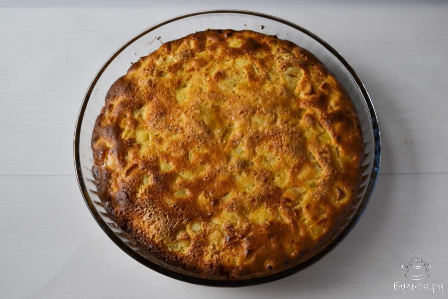 7. Запекайте пирог в духовке 45-50 минут, разогретой до 180 градусов, до золотистой корочки. По желанию, пирог можно посыпать сахарной пудрой.