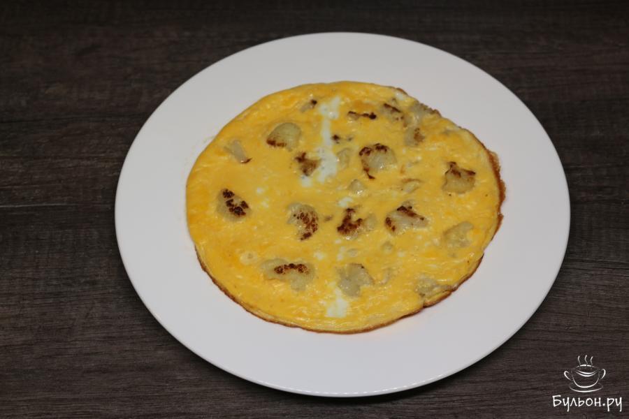 Сегодня захотелось омлета, давно я его не ела. Думала приготовить его с сыром, но потом вспомнила, ч то у меня есть дома немного цветной капусты. Решила приготовить с ней. Так и открыла для себя этот простой и незамысловатый рецепт. Могу сказать с уверенностью, что теперь я буду готовить его чаще, он мне понравился больше, чем с многими другими вариантами добавок продуктов. Дополнит такой прием пищи салат с зеленью и кусочек хлеба или булки.