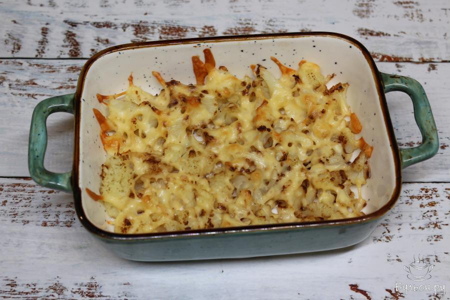 Предлагаю вашему вниманию рецепт запеченой цветной капусты в духовке с сыром. Но это не совсем простой рецепт классической запеченой капусты. В этом рецепте есть, так сказать, своя изюминка. А заключается интересный момент этого рецепта в том, что капуста в начале немного отваривается, затем обжаривается на сливочном масле и только после этого запекается. Именно поэтому капуста, приготовленная по данному рецепту, отличается по вкусу от подобных рецептов. Этот отличный, не избитый гарнир - отлично подойдет ко многим основным блюдам.