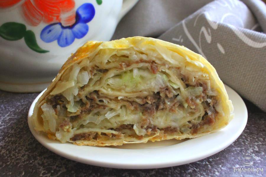 Рулет из лаваша с мясным фаршем, капустой и сыром в духовке - можно приготовить к обеду, ужину или даже перекусить кусочком аппетитного рулета в течение дня. Рулет готовится очень просто, а выпечка получается сытная, насыщенная, вкусная, с сочной и ароматной начинкой. Такой рулет вкусный как горячий, так и холодный, его вполне можно взять на пикник или в дорогу. Если вам не хочется возиться с тестом, попробуйте приготовить такой мясной рулет из лаваша.